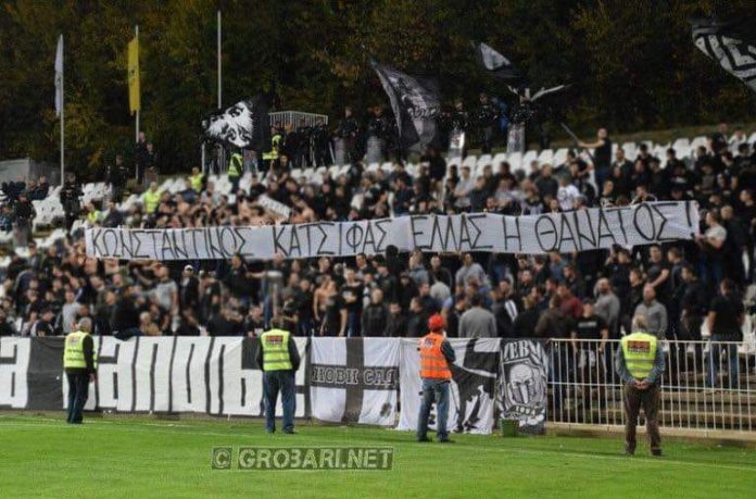 Πανό στη μνήμη του Κωνσταντίνου Κατσίφα σήκωσαν απόψε οι οπαδοί της Σερβικής Παρτιζάν Βελιγραδίου στον αγώνα πρωταθλήματος με αντίπαλο την Κουκαρίτσκι.